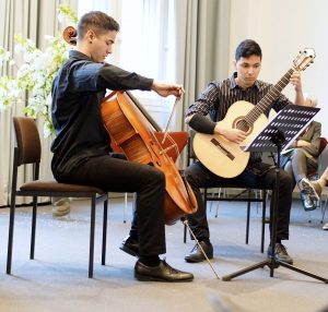 Das Benefizkonzert am 28. April 2019 im Zentrum für Kulturwissenschaftliche Forschung Lübeck, Königstraße 42, fand bei den Besuchern großen Anklang. Der Saal war mit nahezu 100 Förderern und Freunden des Vereins „LMN Lübeck e.V.“voll besetzt. Der Eintritt war frei. Alle Stipendiaten traten ohne Gage auf, so dass die zahlreichen Spenden dem Verein zugute kamen. Unter den Gästen konnte unsere Vorsitzende, Frau Dr. Trautwein, auch den Vorsitzenden des Stiftungsvorstandes der Possehl-Stiftung Lübeck, Herrn Max Schön, begrüßen. Diese Stiftung unterstützt unseren Verein jedes Jahr sehr großzügig. Das abwechslungsreiche Programm unter dem Motto „Frühling“gefiel den Gästen offensichtlich gut. Nach dem Konzert hatten die Besuche Gelegenheit, bei Brot und Wein mit den Künstlerinnen und Künstlern sowie den Vereinsmitgliedern zu plaudern. Der Wein wurde freundlicherweise auch diesmal wieder vom „Nordischen Weinhaus“, Lübeck, Fleischhauerstraße 30, gespendet.