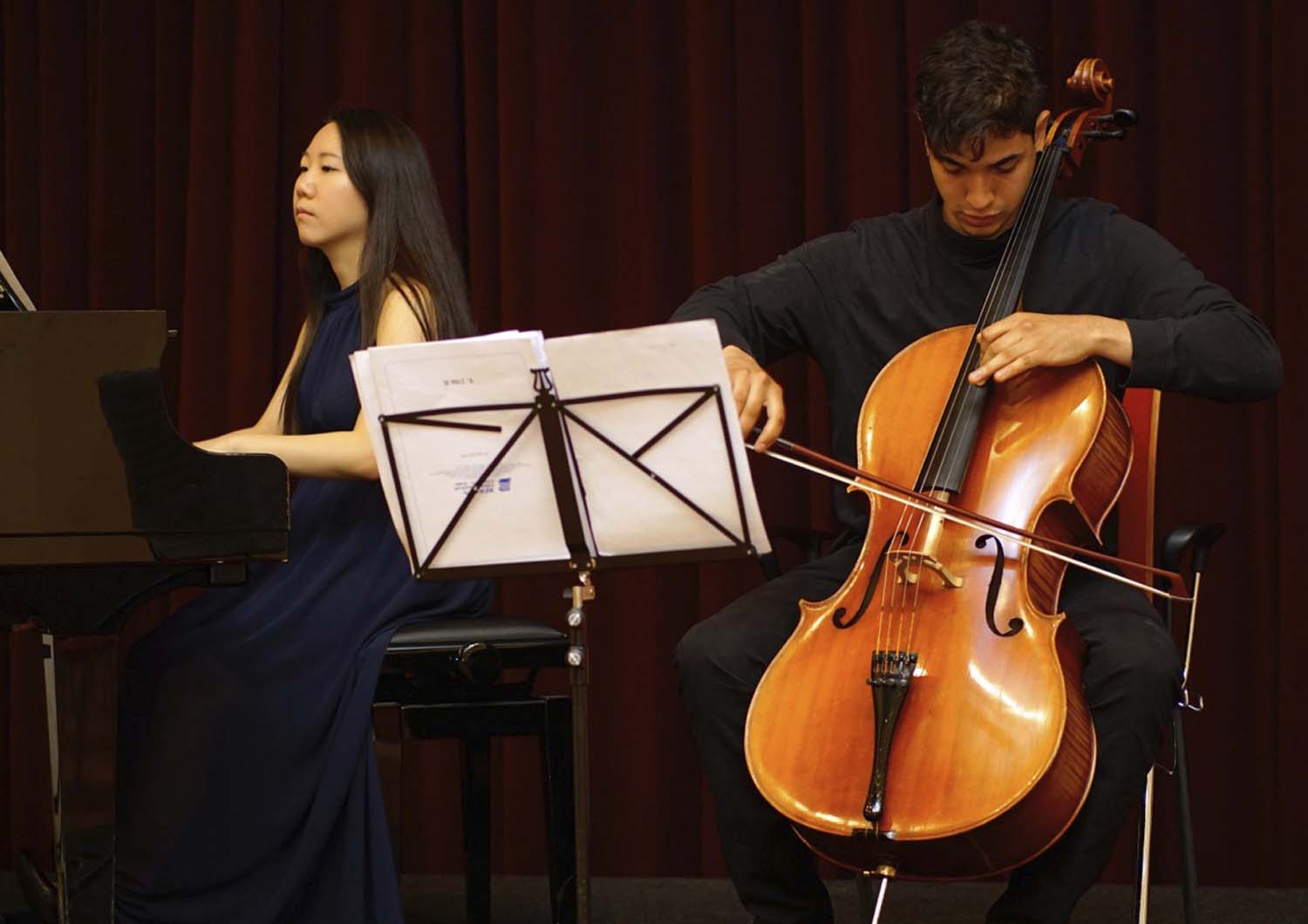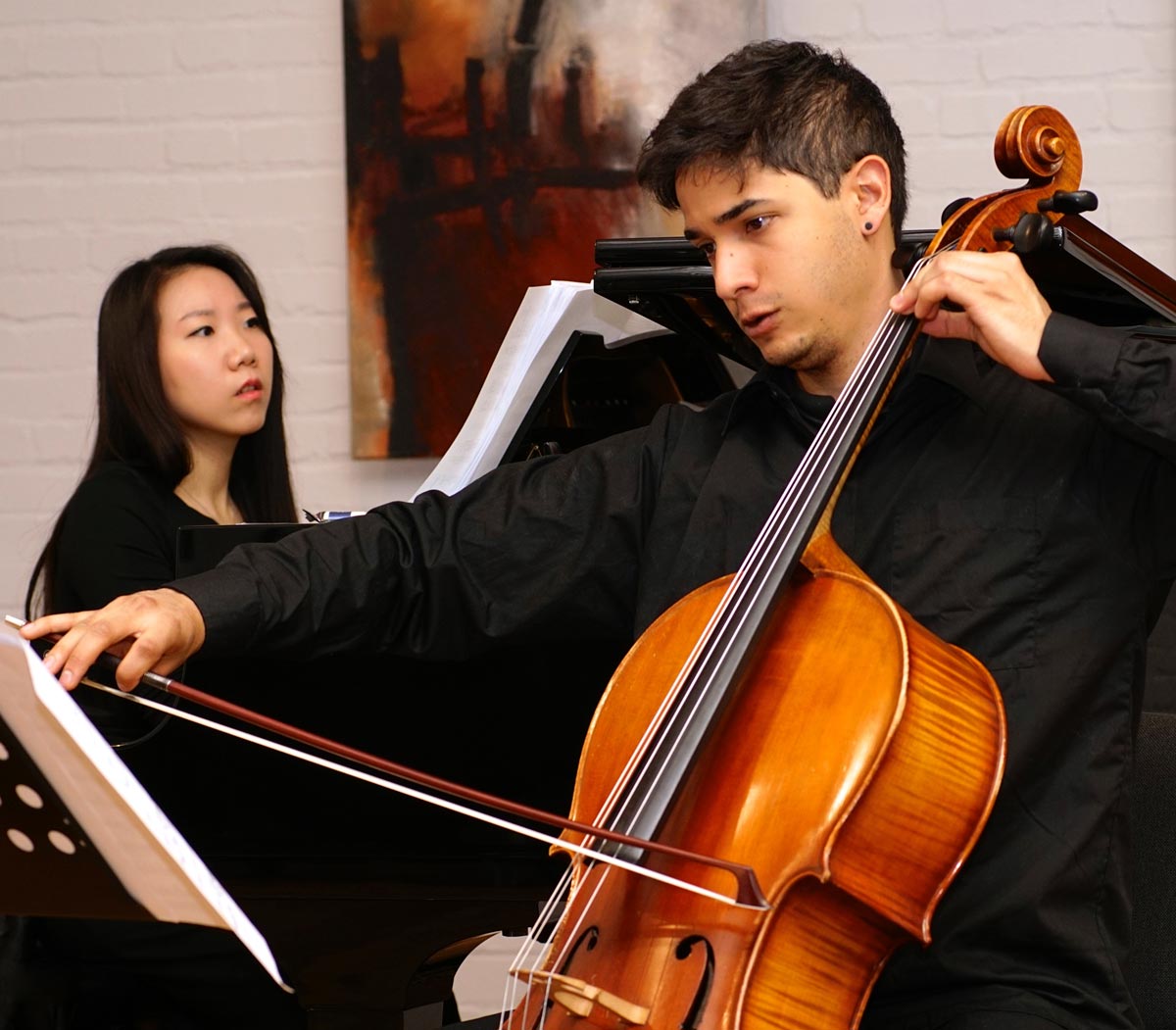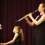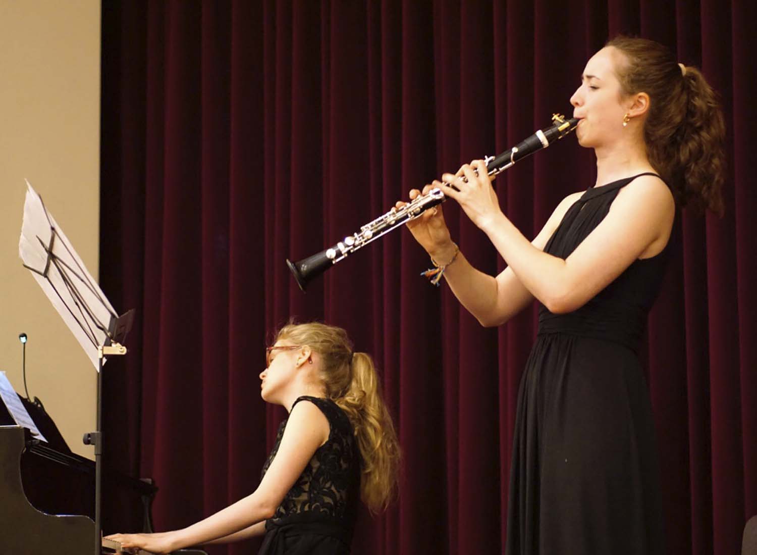 Ins Reich des argentinischen Tangos entführten Daniel Arias Arrieta (Cello) und Hyelee Clara Chang (Klavier). Funkensprühend erklang Musik von oder nach Astor Piazzolla. Ramona Katzenberger (Klarinette) und Jelisaveta Vasiljeva (Klavier) hatten die Konzertfantasie nach Verdis Oper »Rigoletto« einstudiert. Mit zwei Zugaben aus dem Scaramouche von Darius Milhaud verabschiedeten sich die beiden jungen Damen. Zum Schluss taten sich die Pianistinnen Hyelee Clara Chang und Jelisaveta Vasiljeva zusammen und lieferten eine weitere Zugabe nach, »etwas sehr Klassisches in moderner Form«. Das Klassische entpuppte sich als Beethovens »Für Elise«. Viel Applaus vom fröhlich gestimmten Publikum. TD
