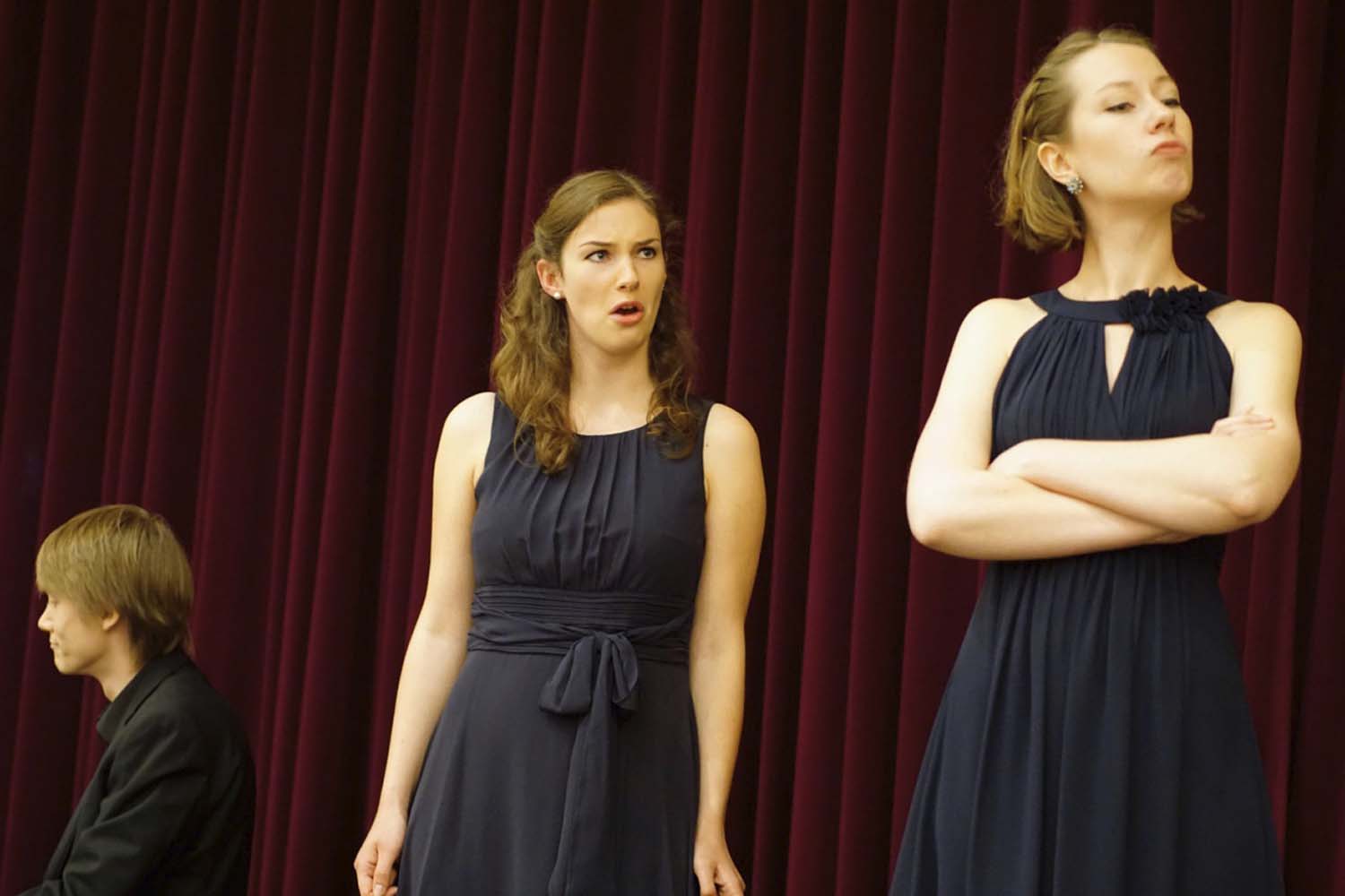 Mit einem Strauß schöner Lieder zu Frühling und Liebe entführten die Sängerinnen Dorothee Bienert (Sopran) und Milena Juhl (Mezzo) die Zuhörer. Am Klavier begleitet von Mikkel Möller Sörensen, erfreuten sie mit Kompositionen von Mendelssohn, Schumann, Brahms und dem Blumenduett aus der Oper »Lakmé« von Leo Delibes. Sie traten später noch einmal auf, mit einem Ohrwurm früherer Rundfunk-Wunschkonzerte, der Barcarole aus »Hoffmanns Erzählungen« von Jacques Offenbach. Das Katzen-Duett vom Komponisten und Meisterkoch Gioacchino Rossini war ihre Zugabe.