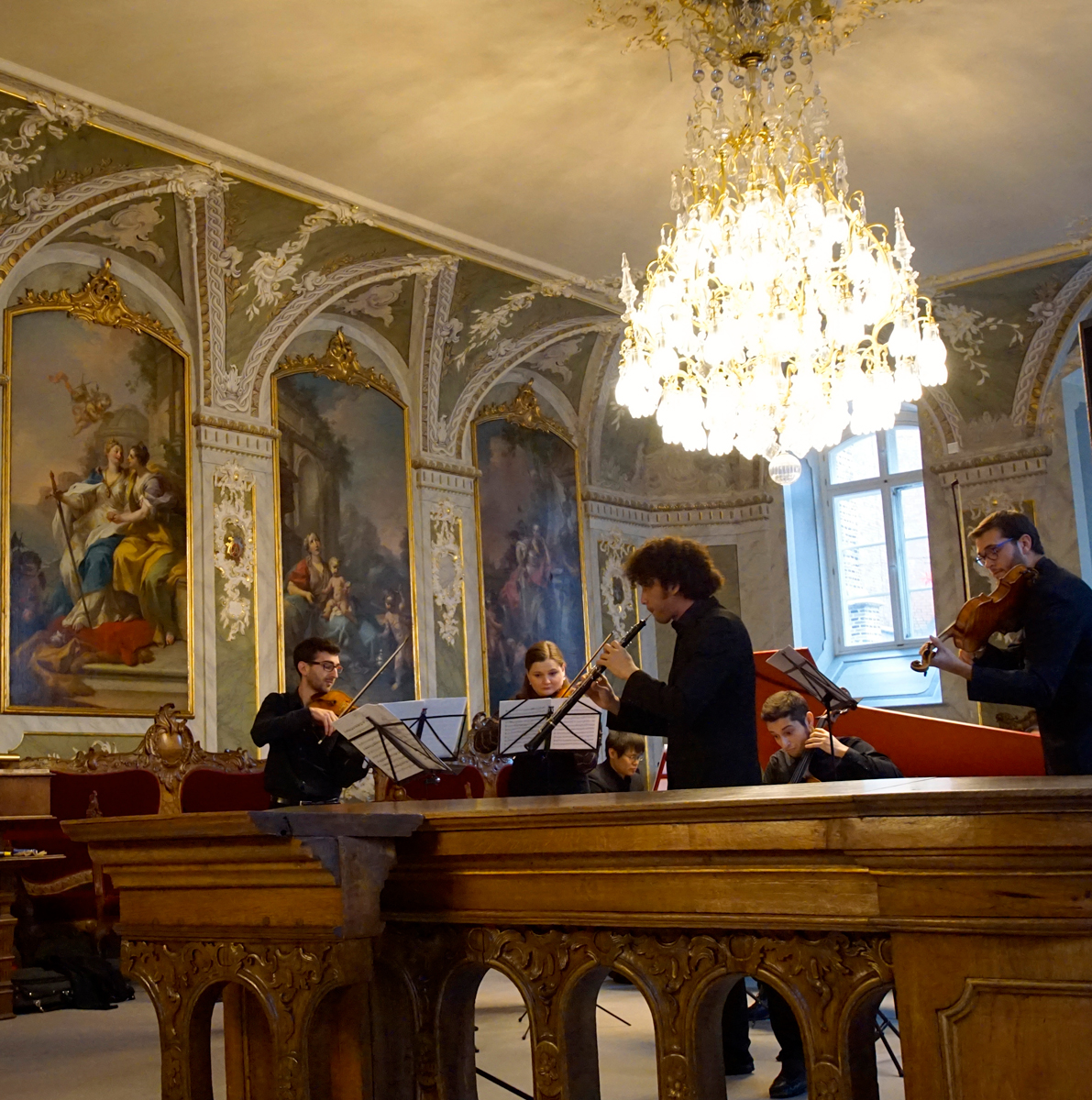 Live Music Now (LMN) ist eine von Yehudi Menuhin gegründete Organisation, die junge Musiker in die Lage versetzt, zur Förderung ihrer künstlerischen Entwicklung vor Menschen aufzutreten, die in prekäre Situationen geraten sind. Die Schönheit der Musik soll Zauber und Fantasie bringen in Krankenhäuser, Gefängnisse, Hospize, Psychiatrien und andere soziale Einrichtungen – als Widerschein von erfüllter Freiheit, die eine belebende und heilsame Wirkung auslösen kann. Die Lübecker Sektion um Gabriele Fehm-Wolfsdorf hatte nun zu einer Benefiz-Matinee in den Audienzsaal des Rathauses eingeladen, in dem sich das frisch gegründete Hanse Galante Ensemble vorstellte, Studierende der Musikhochschule, die aus aller Welt nach Lübeck gefunden hatten und sich der Musik aus der Übergangsphase zwischen Barock und Frühklassik widmen. Carl Philipp Emanuel Bach und Johann Gottlieb Janitsch im Doppelpack standen auf dem Programm, was eine gewisse Gleichförmigkeit bewirkte. Doch ließ sich so besonders intensiv verfolgen, wie in einer Experimentierphase der Musikentwicklung galante und empfindsame Stilistik eine Ausdruckssphäre nach menschlichem Maß evoziert, die Eleganz, Verfeinerung, zudem revolutionäre Ideen freisetzt.