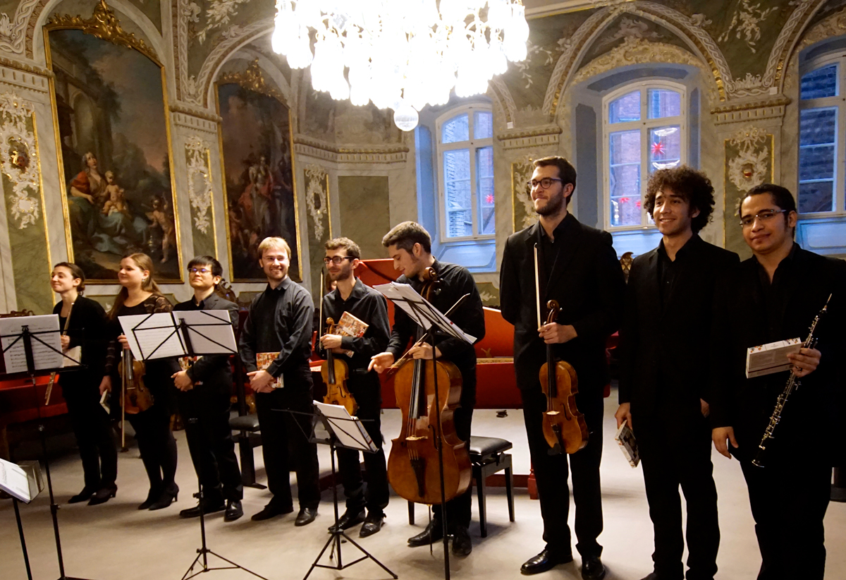 Das Ensemble zeigte sich am 20. November von historischer Spielpraxis affiziert. Die vibratolosen Streicher klangen hell, luftig, vermieden romantischen Schmelz und artikulierten akkurat. Die Bläser nutzten moderne Instrumente von homogener Klangfülle, passten die Spielweise so weit möglich an, doch sind alte Flöten und Oboen in Bauweise und Klangspektrum ein spezielles Equipment. Das Ensemble beschritt daher einen pragmatischen Interpretationsweg. Fesselnd die rasante Fantasie, mit der sich die jungen Musiker in die Musik stürzten. Johans Camacho blies C.P. Bachs Oboenkonzert B-Dur Wq 164 als weit ausgesponnene Klangrede, virtuos im Laufwerk, sein Kollege Sergio Sanchez widmete sich auf gleicher Höhe dem bemerkenswert klassisch angehauchten Es-Dur-Konzert Wq 16; rasante Kapriolen und mediatives Nachsinnen. In Kammerbesetzung kamen Janitschs Quartett g-Moll und die Sonate e-Moll, wo die Flöte von Agnes Mayr das Farbspektrum bereicherte – ausdrucksstark und unverstellt. Das Publikum zeigte sich animiert.