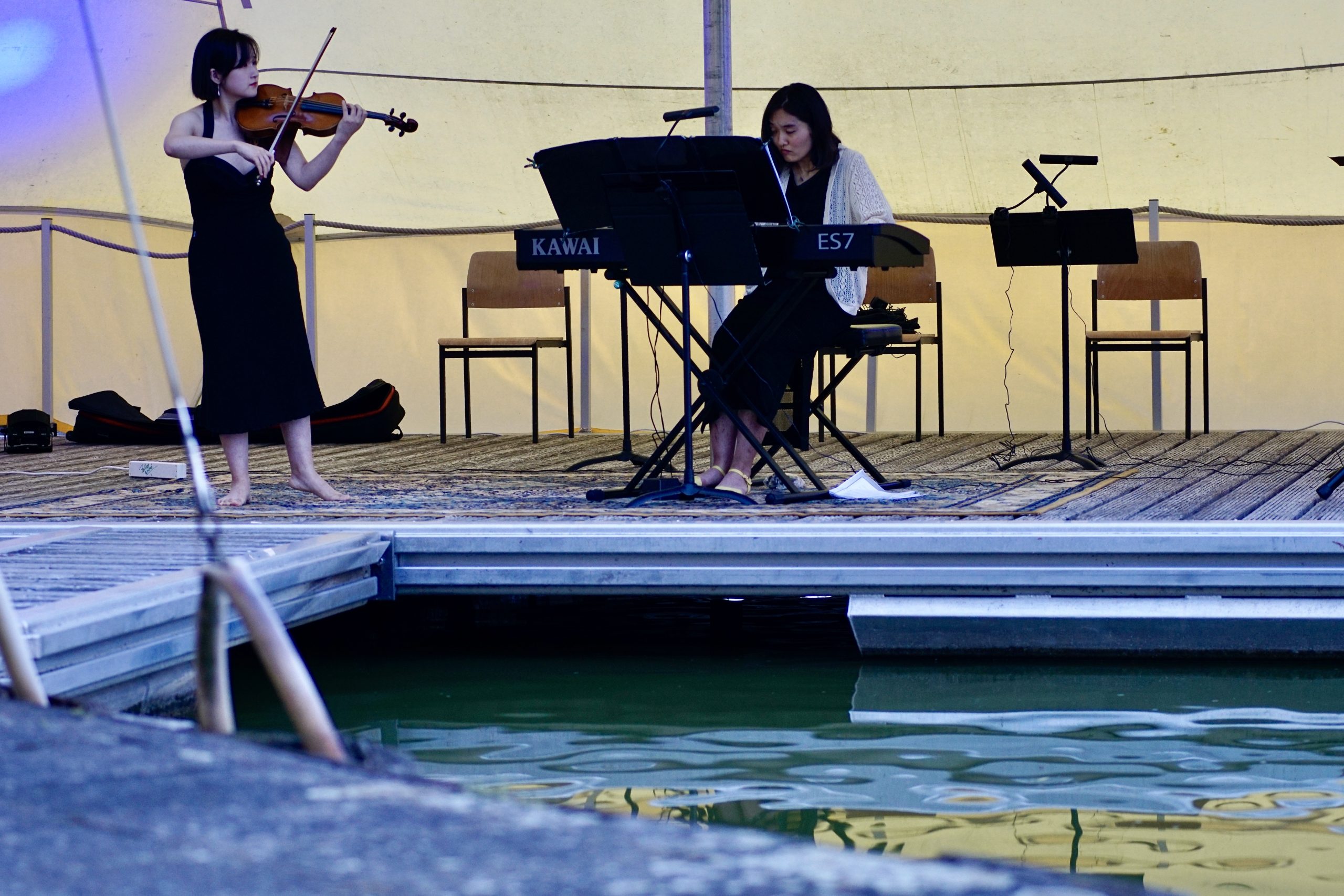 An einem windstillen, lauschig warmen Sommerabend gab die Kulisse des Naturbades Falkenwiese den perfekten Rahmen für ein außerordentlich gelungenes Konzert.
