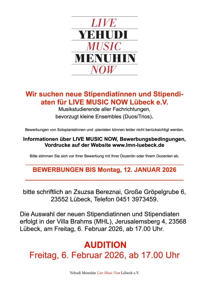 Weitere Informationen zur Audition finden Sie unter: Stipendium – Bewerbung & Audition