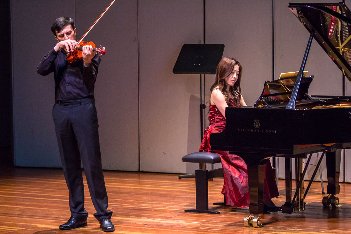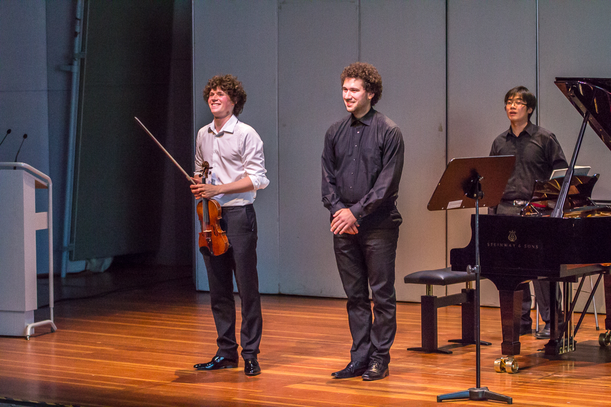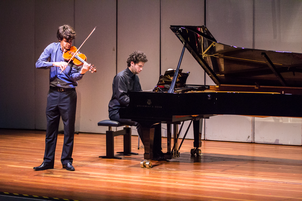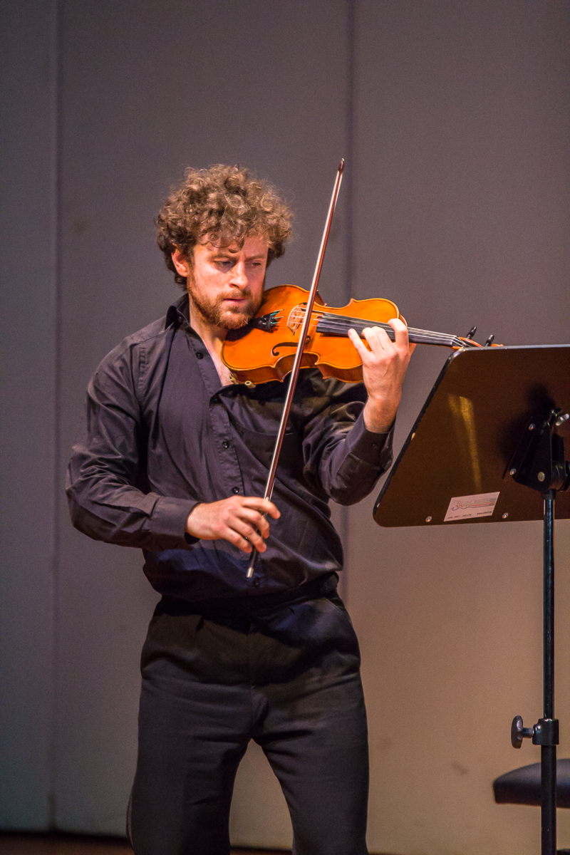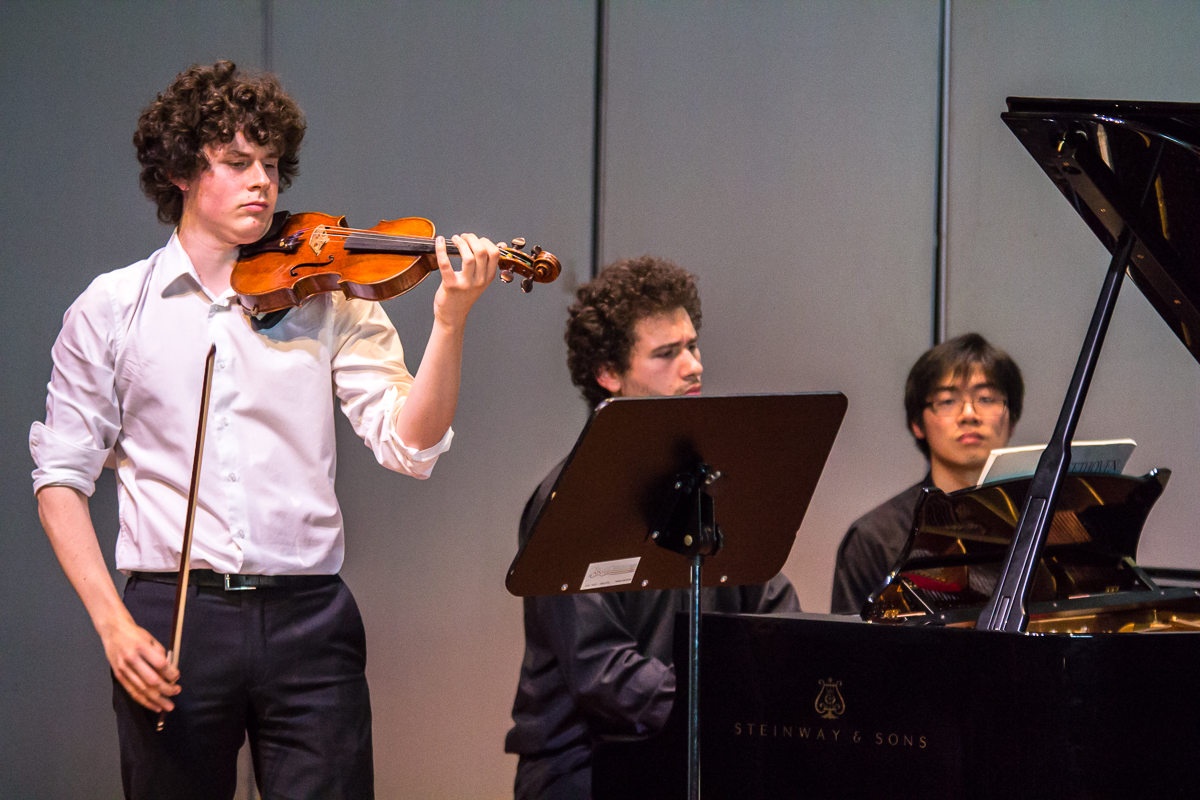 Drei Teile, drei musikalische Ideen. Zunächst waren die drei großen B angesagt: Bach, Beethoven, Brahms, mit ganzen Sonaten oder einzelnen Sätzen. Zu Beginn Bach für Geige und Cembalo (John Doig, Liene Orinska). Dann Beethovens op. 30 Nr. 3 mit Julius Beck (Geige) und Stefan Veskovic, der mehrere Streicher am Klavier begleitete. Aus allen drei Brahms-Sonaten für Klavier und Violine wurde musiziert.