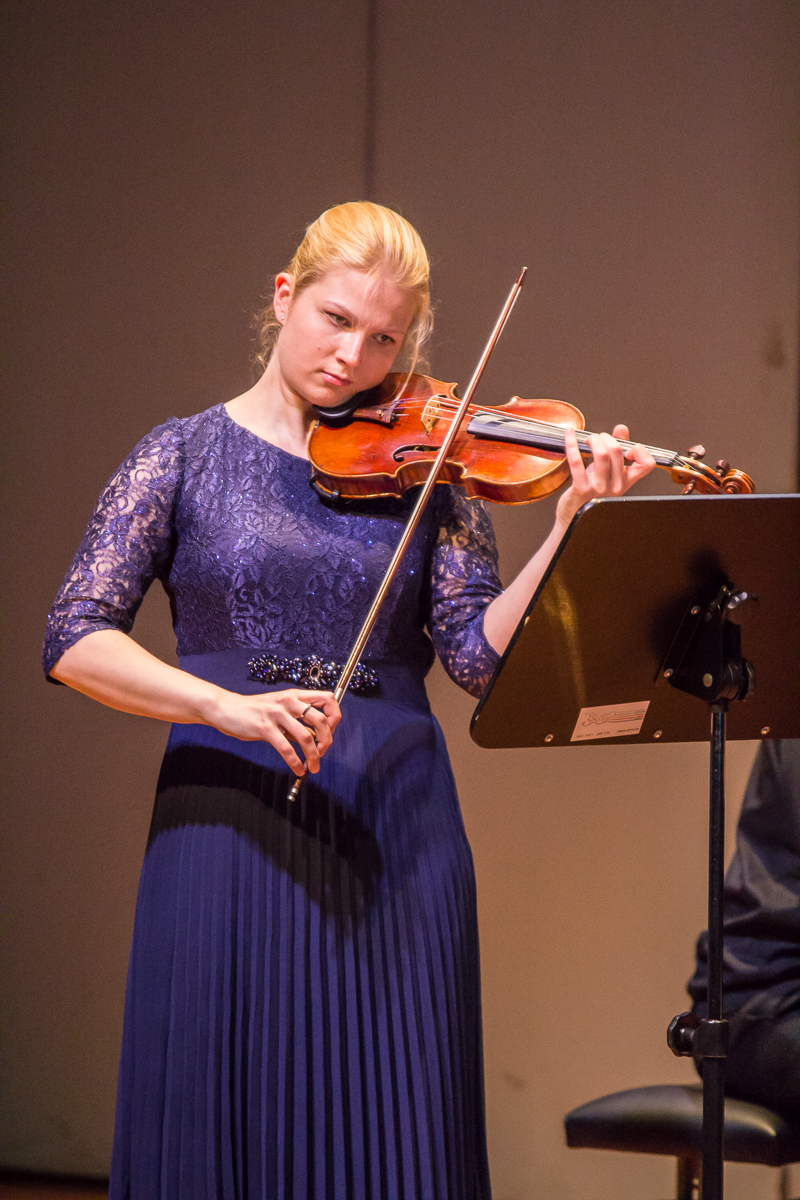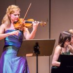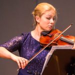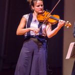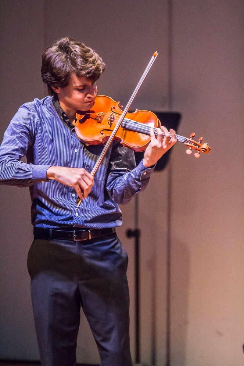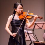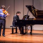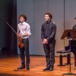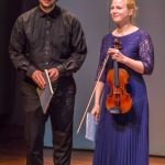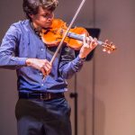 „Menuhins Encores“ lautete der zweite Teil des Abends. Gemeint waren beliebte Zugaben für die Geige. Sie führten schwungvoll durch die Zeiten: Enescu (spritzig: Julius Beck), Saint-Saens (hervorragend: Hovhannes Partizpanyan), nochmals Brahms (ausgefeilt: Ieva Eidukonyte), Kreisler (beschwingt: André Robles Field), Sarasate (virtuos: Ayumu Sasaki), Bernstein (souverän: Sophie Heinrich).